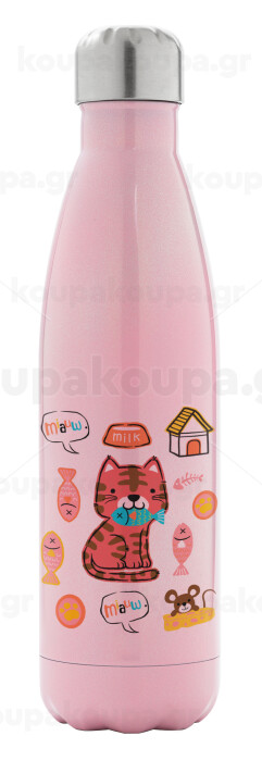 Cats and Fishes, Metal mug thermos Pink Iridiscent (Stainless steel), double wall, 500ml