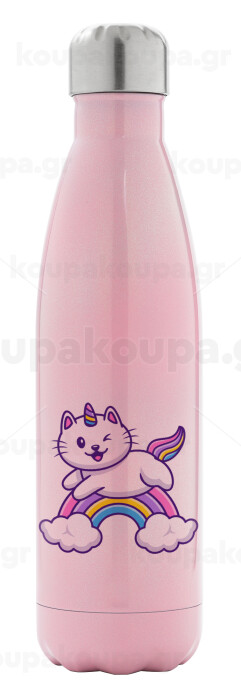 Cute cat unicorn, Metal mug thermos Pink Iridiscent (Stainless steel), double wall, 500ml
