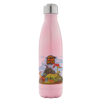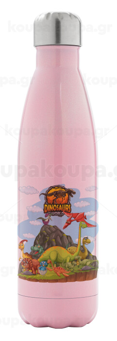 Dinosaur's world, Metal mug thermos Pink Iridiscent (Stainless steel), double wall, 500ml
