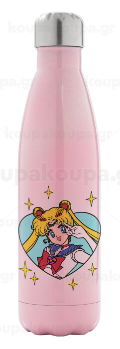 Sailor Moon star, Metal mug thermos Pink Iridiscent (Stainless steel), double wall, 500ml