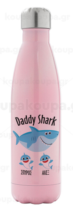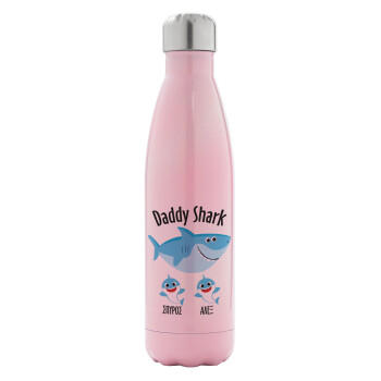 Daddy Shark (με ονόματα παιδικά), Metal mug thermos Pink Iridiscent (Stainless steel), double wall, 500ml