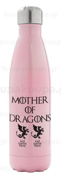 GOT, Mother of Dragons (με ονόματα παιδικά), Metal mug thermos Pink Iridiscent (Stainless steel), double wall, 500ml