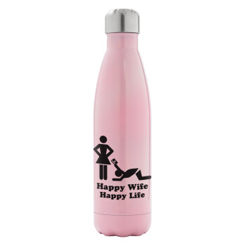 Happy Wife, Happy Life, Metal mug thermos Pink Iridiscent (Stainless steel), double wall, 500ml