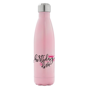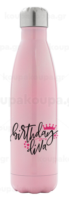 Birthday Diva queen, Metal mug thermos Pink Iridiscent (Stainless steel), double wall, 500ml