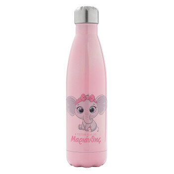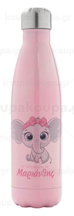 Η νονά μου, ελεφαντάκι ροζ, Metal mug thermos Pink Iridiscent (Stainless steel), double wall, 500ml