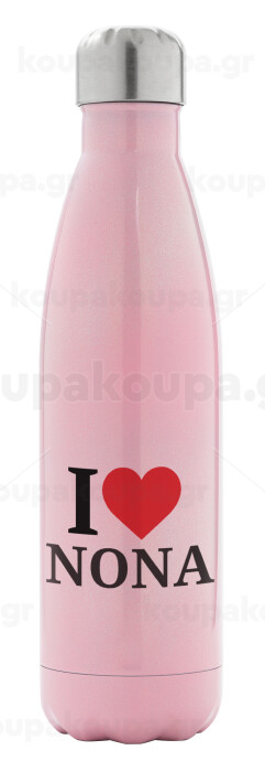 I Love ΝΟΝΑ, Metal mug thermos Pink Iridiscent (Stainless steel), double wall, 500ml