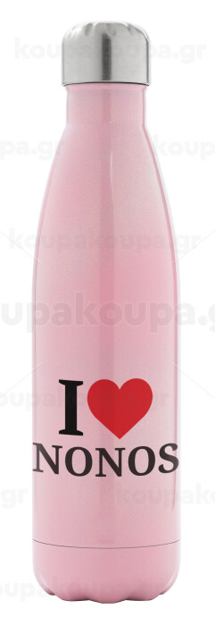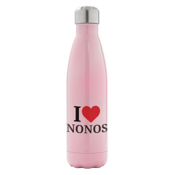 I Love ΝΟΝΟΣ, Metal mug thermos Pink Iridiscent (Stainless steel), double wall, 500ml