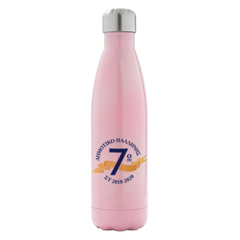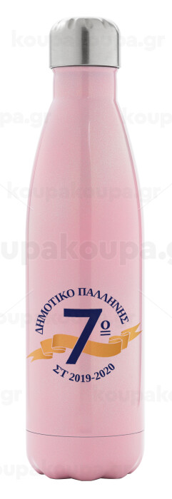 Σχολική μπλε με κορδέλα, Metal mug thermos Pink Iridiscent (Stainless steel), double wall, 500ml