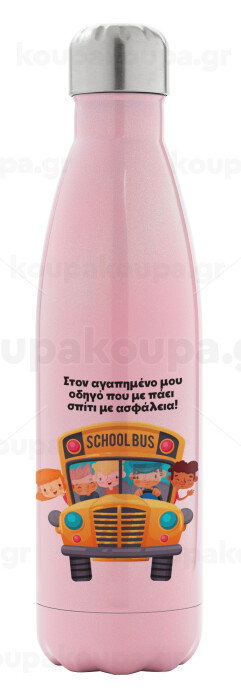 Στον αγαπημένο μου οδηγό που με πάει σπίτι με ασφάλεια!, Metal mug thermos Pink Iridiscent (Stainless steel), double wall, 500ml