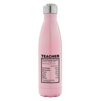 teacher nutritional facts, Metal mug thermos Pink Iridiscent (Stainless steel), double wall, 500ml