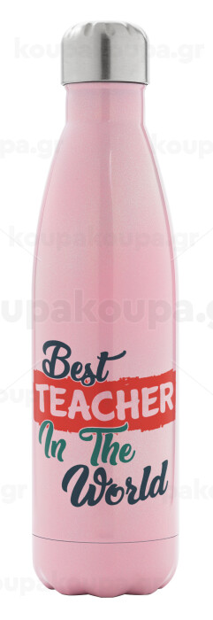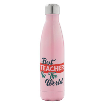 Best teacher in the World!, Metal mug thermos Pink Iridiscent (Stainless steel), double wall, 500ml