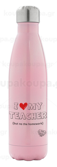 i love my teacher but no the homework outline, Metal mug thermos Pink Iridiscent (Stainless steel), double wall, 500ml