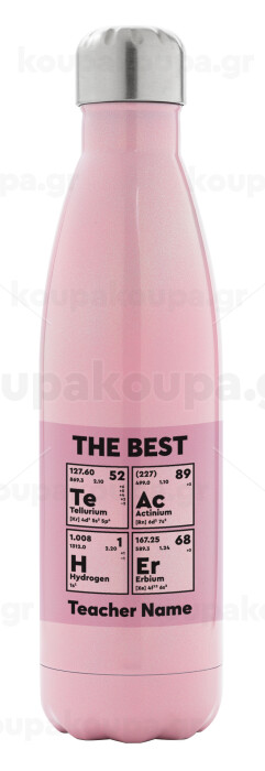 THE BEST Teacher chemical symbols, Metal mug thermos Pink Iridiscent (Stainless steel), double wall, 500ml