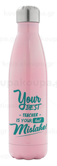 Your best teacher is your last mistake, Metal mug thermos Pink Iridiscent (Stainless steel), double wall, 500ml