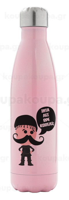 Κρητικός "Ίντα λες ωρέ κοπέλι", Metal mug thermos Pink Iridiscent (Stainless steel), double wall, 500ml