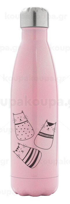 Cute cats, Metal mug thermos Pink Iridiscent (Stainless steel), double wall, 500ml