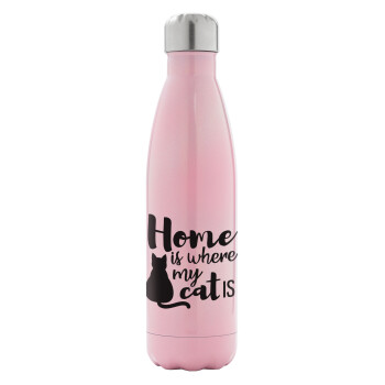Home is where my cat is!, Metal mug thermos Pink Iridiscent (Stainless steel), double wall, 500ml