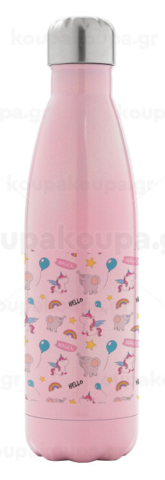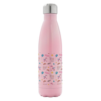 Happy Clouds Doodle, Metal mug thermos Pink Iridiscent (Stainless steel), double wall, 500ml