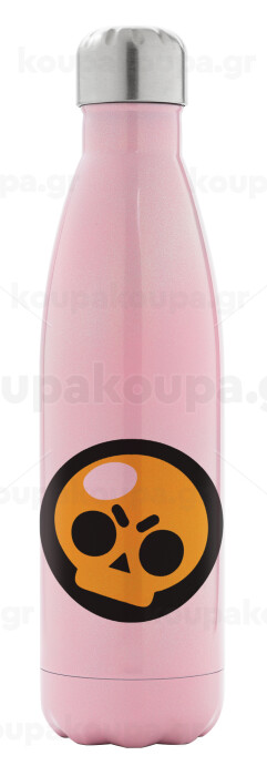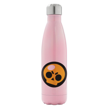 Brawl Stars Skull, Metal mug thermos Pink Iridiscent (Stainless steel), double wall, 500ml