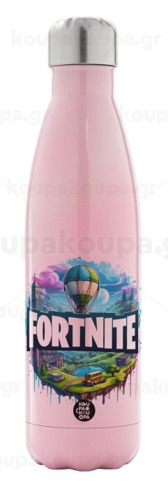 Fortnite land, Metal mug thermos Pink Iridiscent (Stainless steel), double wall, 500ml