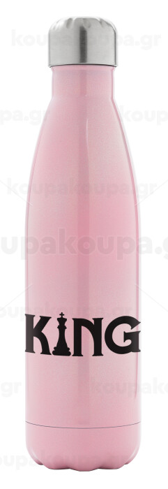 King chess, Metal mug thermos Pink Iridiscent (Stainless steel), double wall, 500ml