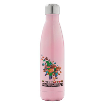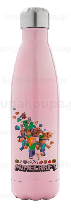 Minecraft adventure, Metal mug thermos Pink Iridiscent (Stainless steel), double wall, 500ml