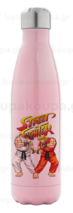 Street fighter, Metal mug thermos Pink Iridiscent (Stainless steel), double wall, 500ml