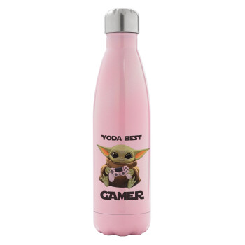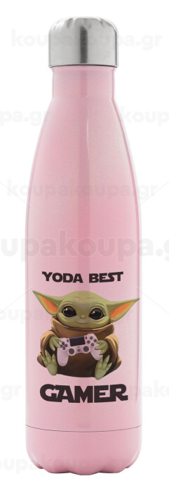Yoda Best Gamer, Metal mug thermos Pink Iridiscent (Stainless steel), double wall, 500ml