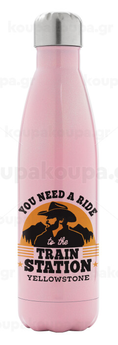 You need a ride to the train station, Metal mug thermos Pink Iridiscent (Stainless steel), double wall, 500ml