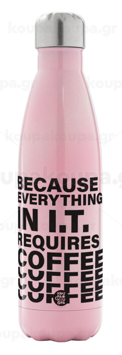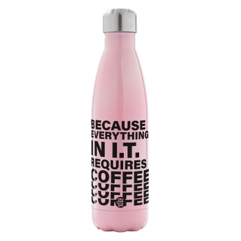 Because everything in I.T. requires coffee, Metal mug thermos Pink Iridiscent (Stainless steel), double wall, 500ml
