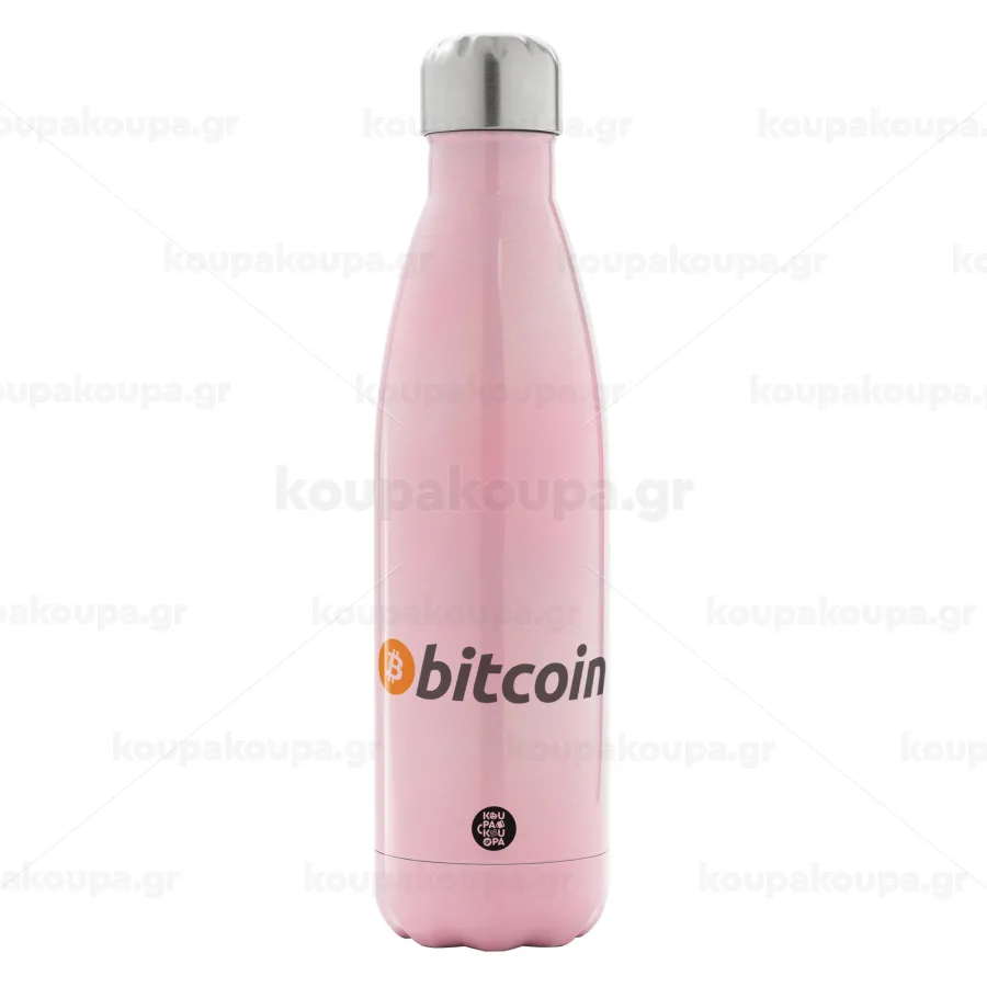 Bitcoin Crypto, Metal mug thermos Pink Iridiscent (Stainless steel), double wall, 500ml