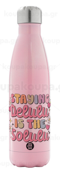 Delulu, Metal mug thermos Pink Iridiscent (Stainless steel), double wall, 500ml