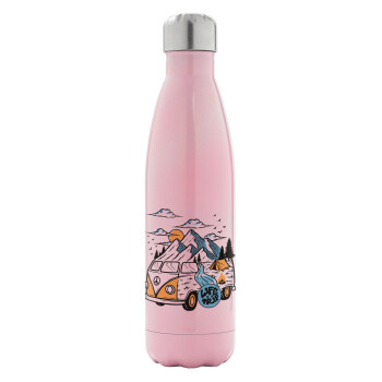 Life is a trip, Metal mug thermos Pink Iridiscent (Stainless steel), double wall, 500ml