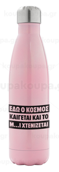 Εδώ ο κόσμος καίγεται και το Μ....Ι χτενίζεται, Metal mug thermos Pink Iridiscent (Stainless steel), double wall, 500ml