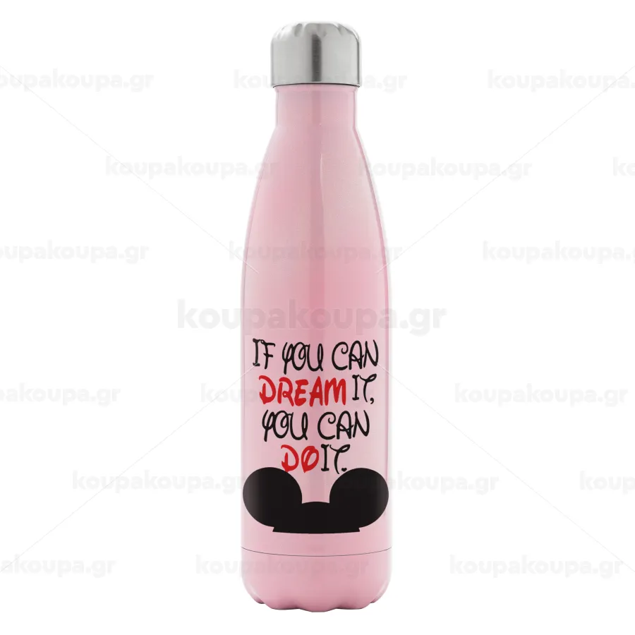 If you can dream it, you can do it, Metal mug thermos Pink Iridiscent (Stainless steel), double wall, 500ml