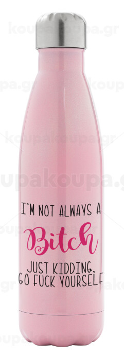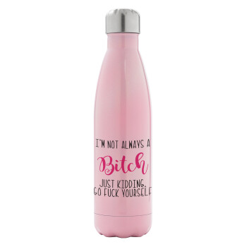 I'm not always a bitch, just kidding go f..k yourself , Metal mug thermos Pink Iridiscent (Stainless steel), double wall, 500ml