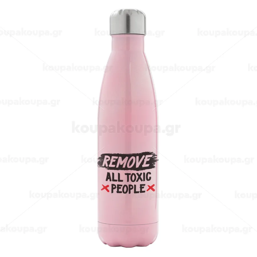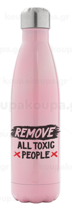 Remove all toxic people, Metal mug thermos Pink Iridiscent (Stainless steel), double wall, 500ml