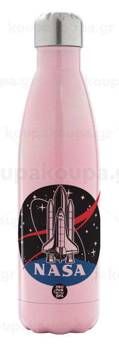 NASA Badge, Metal mug thermos Pink Iridiscent (Stainless steel), double wall, 500ml