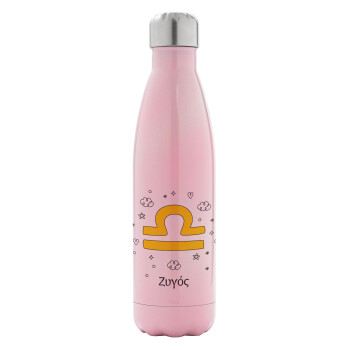 Ζώδια Ζυγός, Metal mug thermos Pink Iridiscent (Stainless steel), double wall, 500ml