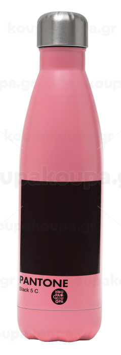 Pantone Black, Metal mug thermos Pink Mat (Stainless steel), double wall, 500ml