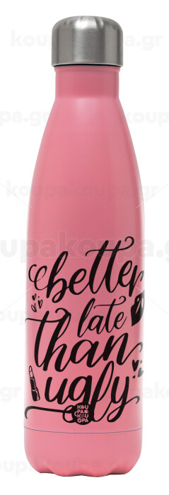 Better late than ugly, Metal mug thermos Pink Mat (Stainless steel), double wall, 500ml