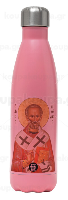 Saint Nicholas orthodox , Metal mug thermos Pink Mat (Stainless steel), double wall, 500ml