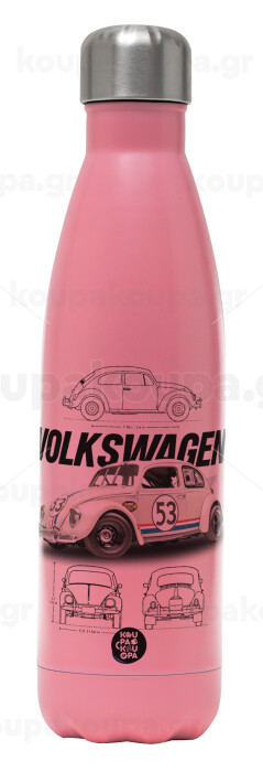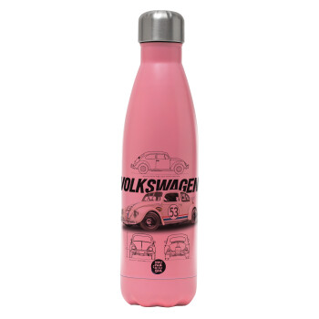 Volkswagen Beetle, Metal mug thermos Pink Mat (Stainless steel), double wall, 500ml
