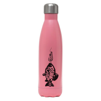 Fishing is fun, Metal mug thermos Pink Mat (Stainless steel), double wall, 500ml