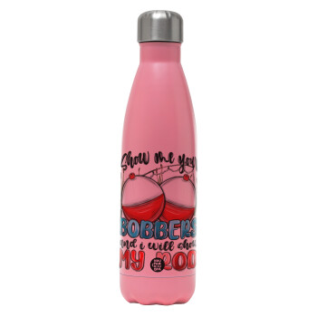 Show me your bobbers and i will show my rod , Metal mug thermos Pink Mat (Stainless steel), double wall, 500ml