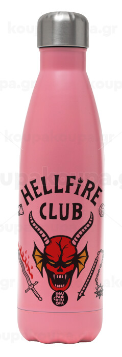 Hellfire CLub, Stranger Things, Metal mug thermos Pink Mat (Stainless steel), double wall, 500ml