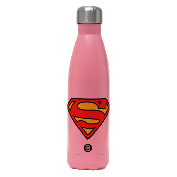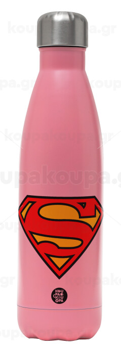 Superman vintage, Metal mug thermos Pink Mat (Stainless steel), double wall, 500ml