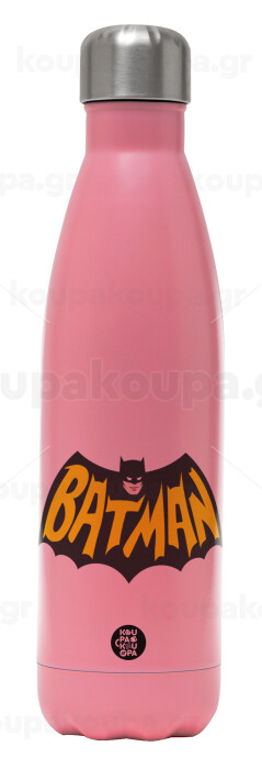 Batman classic logo, Metal mug thermos Pink Mat (Stainless steel), double wall, 500ml