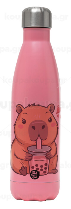 Capybara Bubble Tea, Metal mug thermos Pink Mat (Stainless steel), double wall, 500ml