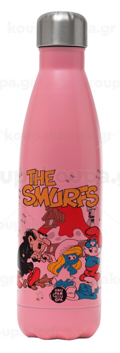 The smurfs, Metal mug thermos Pink Mat (Stainless steel), double wall, 500ml